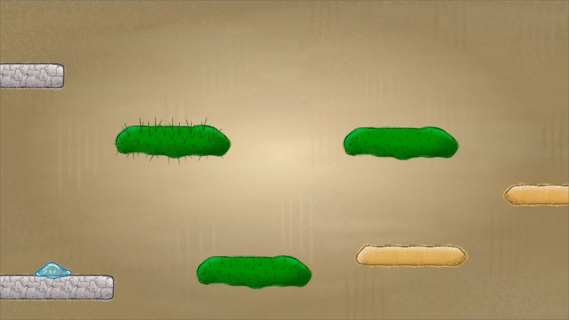 Play as a raindrop and traverse various types of terrain in order to get back to your cloud. Each room your goal is to EXIT THROUGH THE TOP OF THE ROOM.